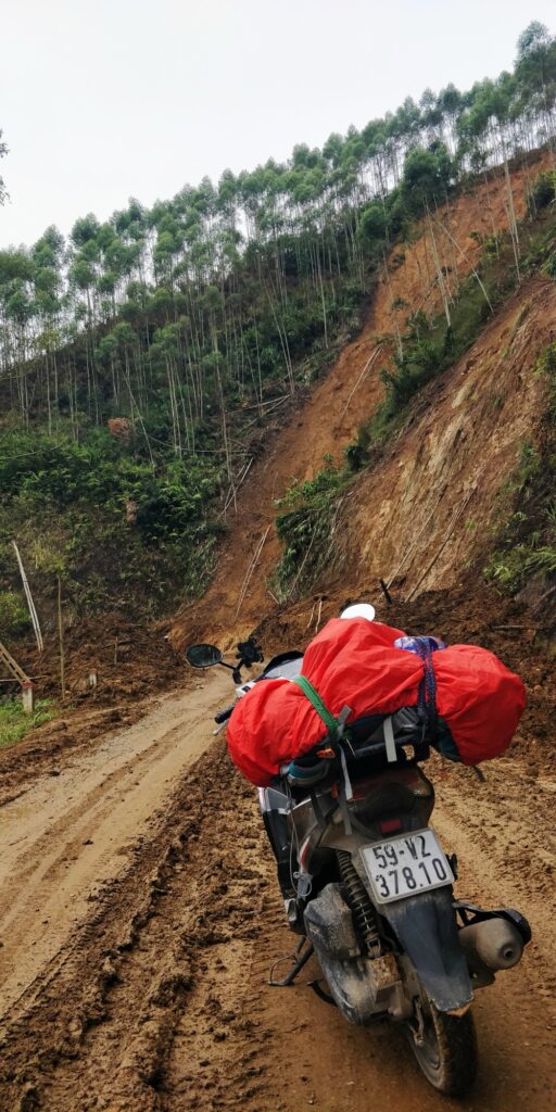 Ollie und ich fuhren gen Süden und damit voll rein in die Regenfront. Etwa 400 Kilometer vor Da Nang mussten wir umkehren. Die vor uns liegenden Straßen waren überschwemmt und das Risiko von Erdrutschen zu hoch. Manche Gebiete waren überhaupt nicht befahrbar.