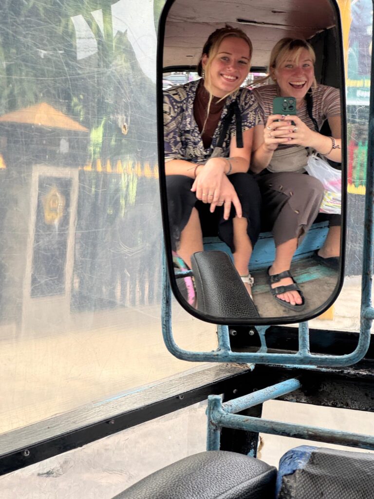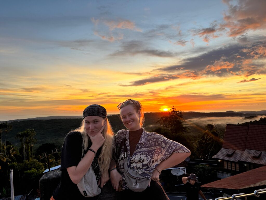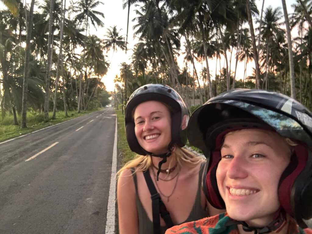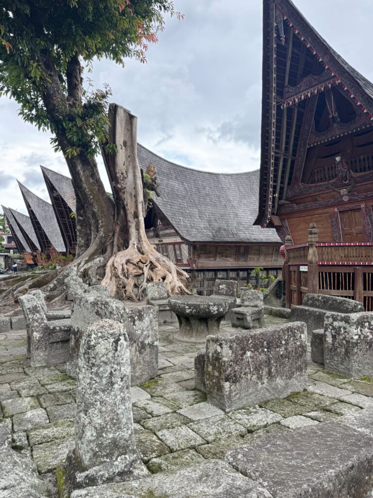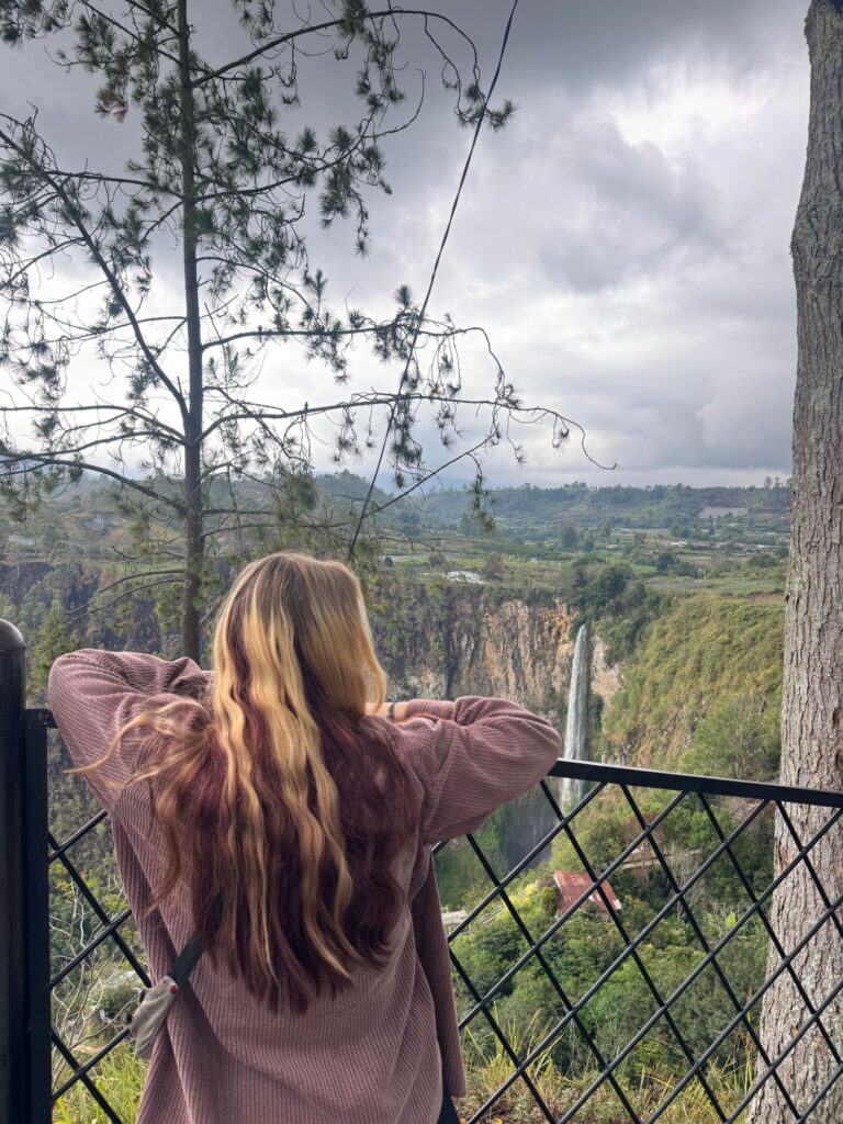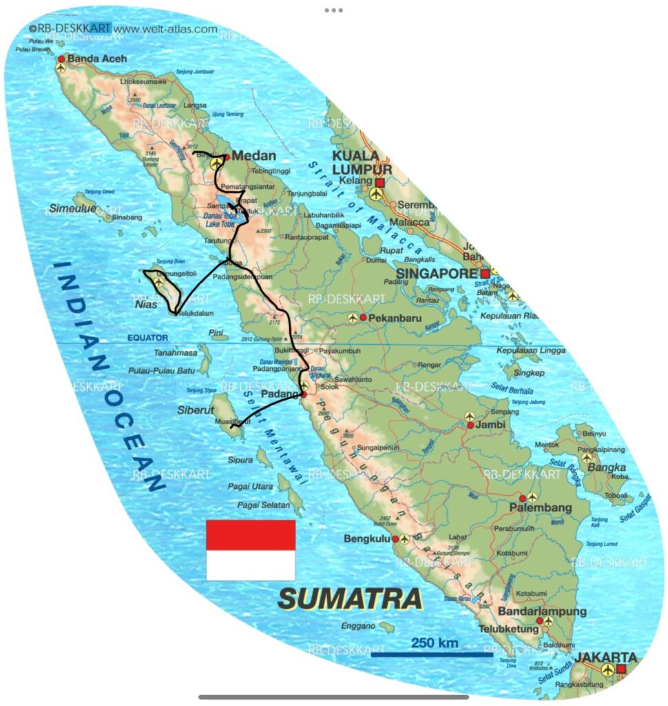 Einordnung Indonesien auf der Weltkarte Meine Strecke, zurückgelegt mit Bus, Auto, Fähre und ScooterEines der ersten Bilder aus Sumatra. Kira habe ich Kuala Lumpur getroffen. Wir kamen sofort ins Gespräch, weil wir beide den Plan hatten, nach Sumatra zu reisen. Sie erzählte mir von einem interessanten Freiwilligenprojekt, wo wir uns dann auch tatsächlich wiedertrafen. Am Ende waren Kira und ich drei Wochen gemeinsam auf Sumatra und Nias unterwegs.Das Dorf Bukit Lawang, Tor zum Gunung Leuser Nationalpark. Hier kann man Treks in den Dschungel unternehmen, um Urang Utans zu sehen. In diesem Dorf haben Kira und ich als Freiwillige -versucht- einem Guide mit seiner Internetpräsenz zu helfen.Von den Mädels in Bukit Lawang wurden uns die dicksten und dunkelsten Augenbrauen ever geschminkt. Damit ging es danach auf den Jahrmarkt.Das erste Frühstück auf unserem dreitägigen Dschungel-Trek.Auch bei unserem zweiten Campingplatz waren wir umgeben vom Dachungel und dem Fluss.Bus von Bukit Lawang nach Medan. Öffentlicher Transport in Sumatra ist immer ein Erlebnis. Meine Highlights waren Busfahrer, die mit anderen Busfahrern Rennen gestartet haben und flirtende Männer an Bushaltestellen. Von allen asiatischen Ländern, die ich bisher besucht habe, haben indonesische Typen am meisten geflirtet (auf eine Art, die ich aber unterhaltsam fand. Unangenehm wurde es fast nie).Die Stadt Berastagi in den Bergen. Nach drei Monaten schwüler Hitze in Südostasien tat die kühle Bergluft so gut. Den Blick von den Wolken in den Berghängen wollte ich morgens nach dem Aufstehen nicht mehr abwenden.Der Vulkan Mount Sibayak auf 2212 Metern. Für die Sonnenaufgang-Wanderung sind wir um vier Uhr morgens aufgestanden. Aber wie man sieht, sieht man nichts. Es war trotzdem eine schöne Erfahrung. Vor allem anschließend in einer heißen Quelle zu liegen, tat echt gut.Der Ausblick auf den größten Vulkansee der Welt – Tobasee.Der Tobasee ist unter anderem auch für seine Magic Mushrooms bekannt. Interessanterweise nahmen an diesem Tag die Wolken echt schöne Formen an.Mit Marion und Kira habe ich die Insel auf Rollern erkundet. Hier stehen Marion und ich vor einem traditionellen Haus am Tobasee.Der Ausblick, den Kira und ich von unserem Zimmer aus hatten.Bin ich am Gardasee oder auf Sumatra?Ganz ganz früher wurden hier Stadttreffen abgehalten. Hat schon auch Spaß gemacht, hier langzufahren.Kira und ich in unserem ersten Tuk Tuk (und gleich abgezockt worden) auf dem Weg zur Immigrationsbehörde, um unsere Visa zu verlängern. Bei mir hatte es an dem Tag nicht geklappt, also bin ich auf Nias zur Behörde gegangen, wo ich die korrupten Mitarbeiter kennenlernen durfte und nur gerade so mein Visum erhalten konnte.Die Übernachtsfähre von Sibolga nach Nias kostet nur Sieben Euro. Hier mein Schlafplatz in einem Saal mit 200 Betten und einem Bett aus Metall. Ich habe überraschend gut geschlafen und am nächsten Morgen einen schönen Sonnenaufgang gesehen.Der erste Abend im Salty Dog Hostel auf Nias. Die Insel ist übrigens weltbekannt für ihre Surfspots.Die Kinder in diesem Dorf auf Nias übten gerade einen Tanz für die Zeremonie des neuen Königs des Dorfes.Eines meiner Lieblingsessen in Indonesien. Reis mit viel Gemüse, Tofu, Erdnüssen und Sardellen. Kira als Fahrerin und ich als Passenger Princess nach einer ihrer Surfstunden.Sonnenuntergang auf Nias.Mit einem Roller bin ich drei Tage um die Insel gefahren. Hier war die Straße gut aber auf vielen anderen Strecken konnte ich meine Roller-Fähigkeitrn perfektionieren. Zum Beispiel auf 30 Kilometer löchrigen Schotterweg.Ich liebe ja ein gutes Schiffswrack. Das hier wurde mit riesigen Seilen an Land befestigt.Eines der vielen traditionellen Dörfer auf Nias. Das Video zeigt einen jungen Mann, der über einen zwei Meter hohen Stein springt. Früher, als die Dörfer auf Nias noch Kriege miteinander geführt haben, mussten die Männer der Dörfer in der Lage sein, über die hohen Dorfmauern zu springen. Heute wird diese Fähigkeit nur noch zur Heirat gebraucht. Wer heiraten will, muss über diesen Stein springen.Zwei blonde Cuties am Sonnenuntergang. Kira’s und mein letzter Abend, bevor ich weiterzog, um die Mentawai zu besuchen. Die drei Wochen mit Kira auf Sumatra waren ein Highlight meiner Reise.Nach Nias ging es für mich nach Bukittinggi. Dafür musste ich die zehnstündige Fähre von Nias nach Sibolga und anschließend eine zehnstündige Busfahrt -ebenfalls über Nacht – nehmen. Die Fahrt war ganz besonders. Viele der Straßen auf Sumatra sind im Schlangenmuster. Eine Kurve folgt auf die nächste. Oft drehen die Busfahrer die Musik extrem laut, damit sie nicht einschlafen. So kann aber auch sonst niemand schlafen. Ich hatte zudem noch drei Reisetabletten intus, damit mir nicht schlecht wird. Deswegen habe ich aber auch Dinge auf den Straßen gesehen, die höchstwahrscheinlich nicht wirklich da waren. Wie auch immer: das Foto zeigt einen Vulkan bei Bukittinggi, der alle paar Tage ausbricht, aber keine Gefahr darstellt.Mitten in der Stadt kann man alte japanische Tunnel des zweiten Weltkrieges besuchen. So sah es dort drinnen aus.Diesen Ausblick gibt es in der Stadt Padang. Während viele Städte in Indonesien meiner Meinung nach wirklich nicht sehenswert sind, stellen die Städte Bukittinggi und Padang echte Gegensätze dar. Die Städte liegen in Nähe wunderschöner Natur, die einfach zu erreichen ist. Meine letzten Tage auf Sumatra habe ich in Padang verbracht und es sehr genossen. Wie man sich da immer noch für Bali entscheidet, ist mir unklar. Am Ende habe ich Indonesien wirklich schweren Herzens verlassen – aber auch mit der Gewissheit, irgendwann wiederzukommen. Gleichzeitig habe ich mich auf das nächste Ziel gefreut: Vietnam.