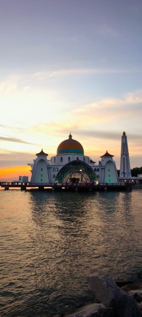 In Melakka habe ich mit anderen Freiwilligen den Sonnenuntergang über dem Meer neben dieser Moschee genießen können.