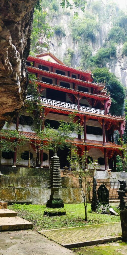 Eine buddhistische Tempelanlage zwischen Felswänden in Ipoh.