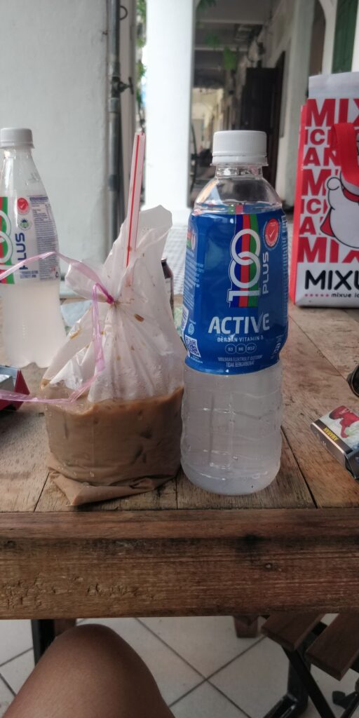 Meiner Meinung nach kann man in Kuala Lumpur nicht viel mehr als Feiern gehen. Nach einer langen Nacht sah mein nächster Morgen im Hostel für gewöhnlich so aus. Ein Eiskaffee in einer Plastiktüte und Elektrolyte.