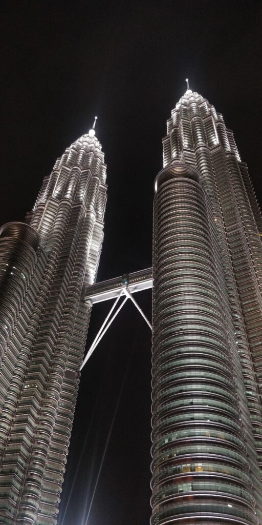 Die Petronas Türme in Kuala Lumpur sind Hauptsitz der gleichnamigen Öl- und Gasfirma. Von 1996 bis 2004 waren sie mit 451.9 Metern die höchsten Gebäude der Welt. Daraufhin wurden sie vom Taipei 101 Wolkenkratzer überholt. Heute ist der Burj Khalifa in Dubai das höchste Gebäude der Welt. Für mich erinnern sie an ein Raumschiff aus einem Sci-Fi Film.