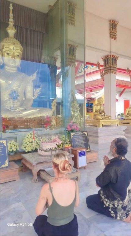 Plötzlich sitze ich mit gekreuzten Beinen und gefalteten Händen vor einer goldenen Buddha-Statue, während ich ein Gebet nachspreche, das ich nicht verstehe.