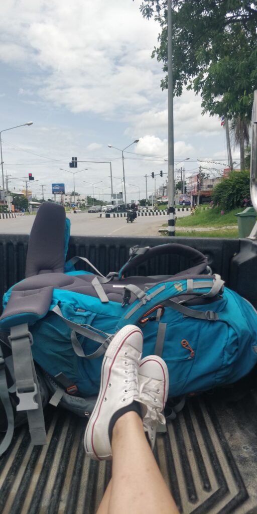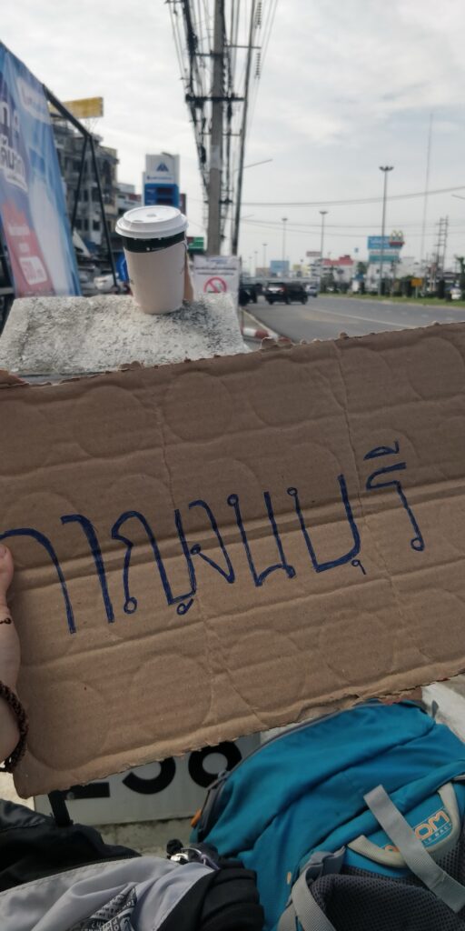 In Thailand zu trampen, hat manchmal einen großen Nachteil. Oft wünsche ich mir, Thailändisch zu sprechen, wenn ich versuche, mich mit Leuten zu unterhalten. Aber meine Thai-Kenntnisse reichen kaum über Hallo, Danke und Lecker hinaus und die wenigsten Thailänder*innen sprechen gutes Englisch. Mein Wunsch, mit Einheimischen in Gespräche zu kommen, die über Smalltalk hinausgehen, wird aufgrund mangelnder Möglichkeit, Google Übersetzer während des Autofahrens zu nutzen, häufig zunichte gemacht. Das hindert mich daran, mehr über die Geschichte anderer Menschen zu lernen. Ich lerne aber trotzdem ihre Herzlichkeit kennenzulernen. Viele laden mich zum Essen und zu Kaffee ein – die meisten Versuche, mich bei ihnen zu revanchieren, bleiben oft vergebens. Außerdem bringen sie mich nicht nur zu meinem Ziel; sie bestehen darauf, mich direkt zu meinem Hostel zu fahren.